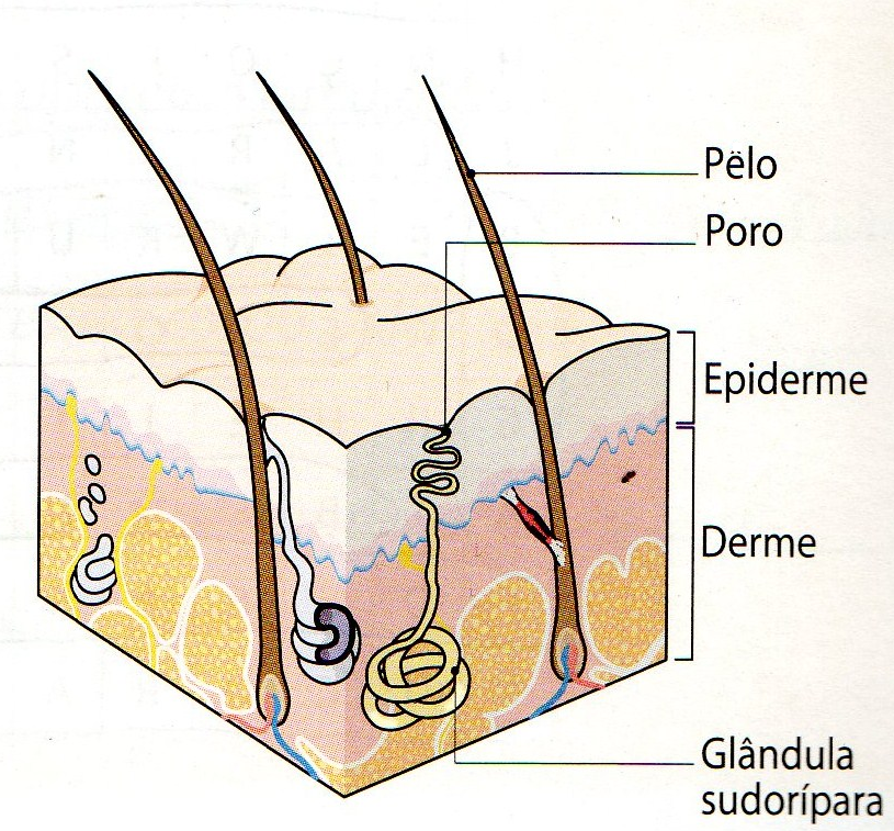 Na pele há glândulas (glândulas